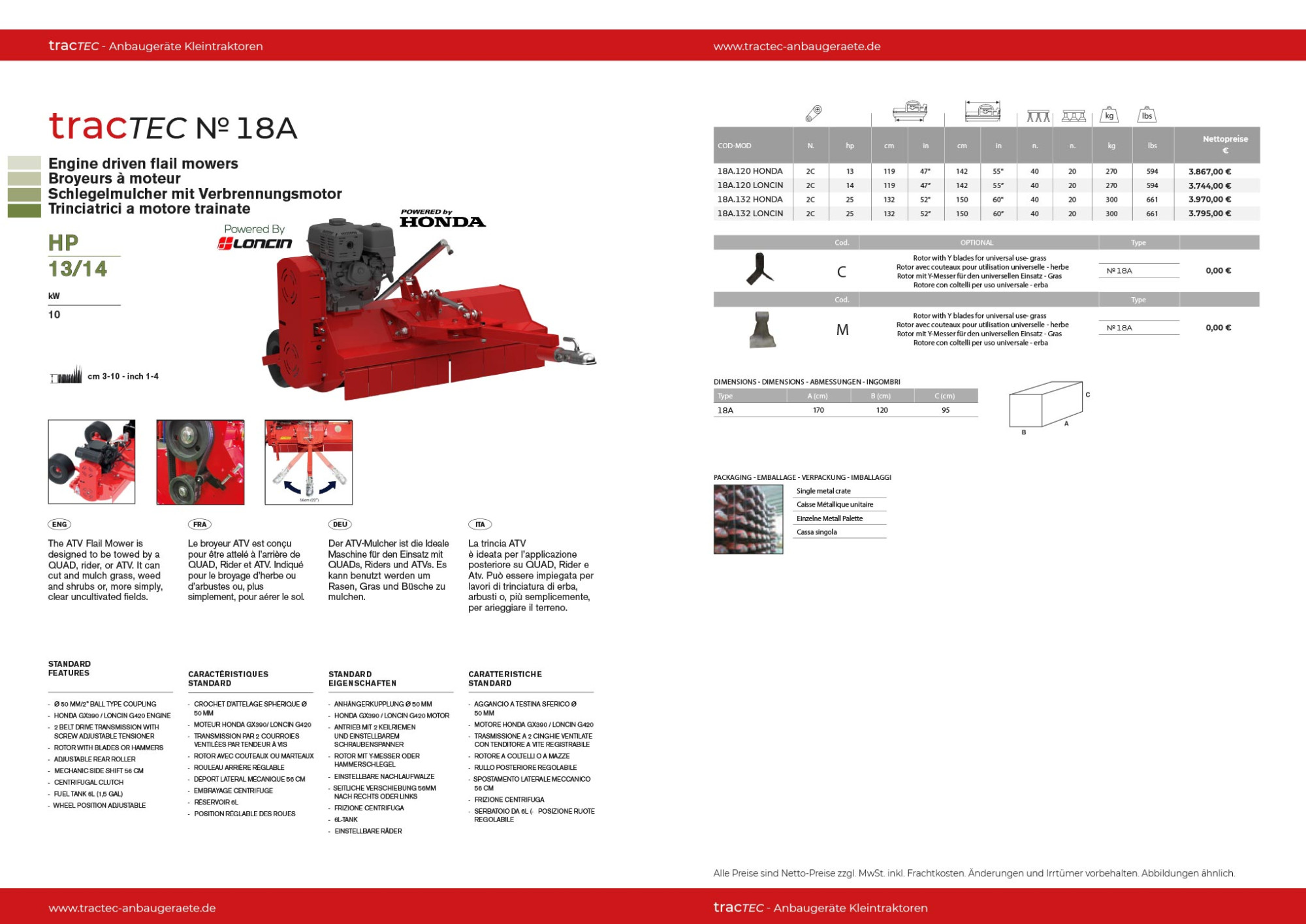 tracTEC No 18A Schlegelmulcher mit Verbrennungsmotor - Messer: C - Ausführung: № 18A.120, Arbeitsbreite (cm) 120, LONCIN