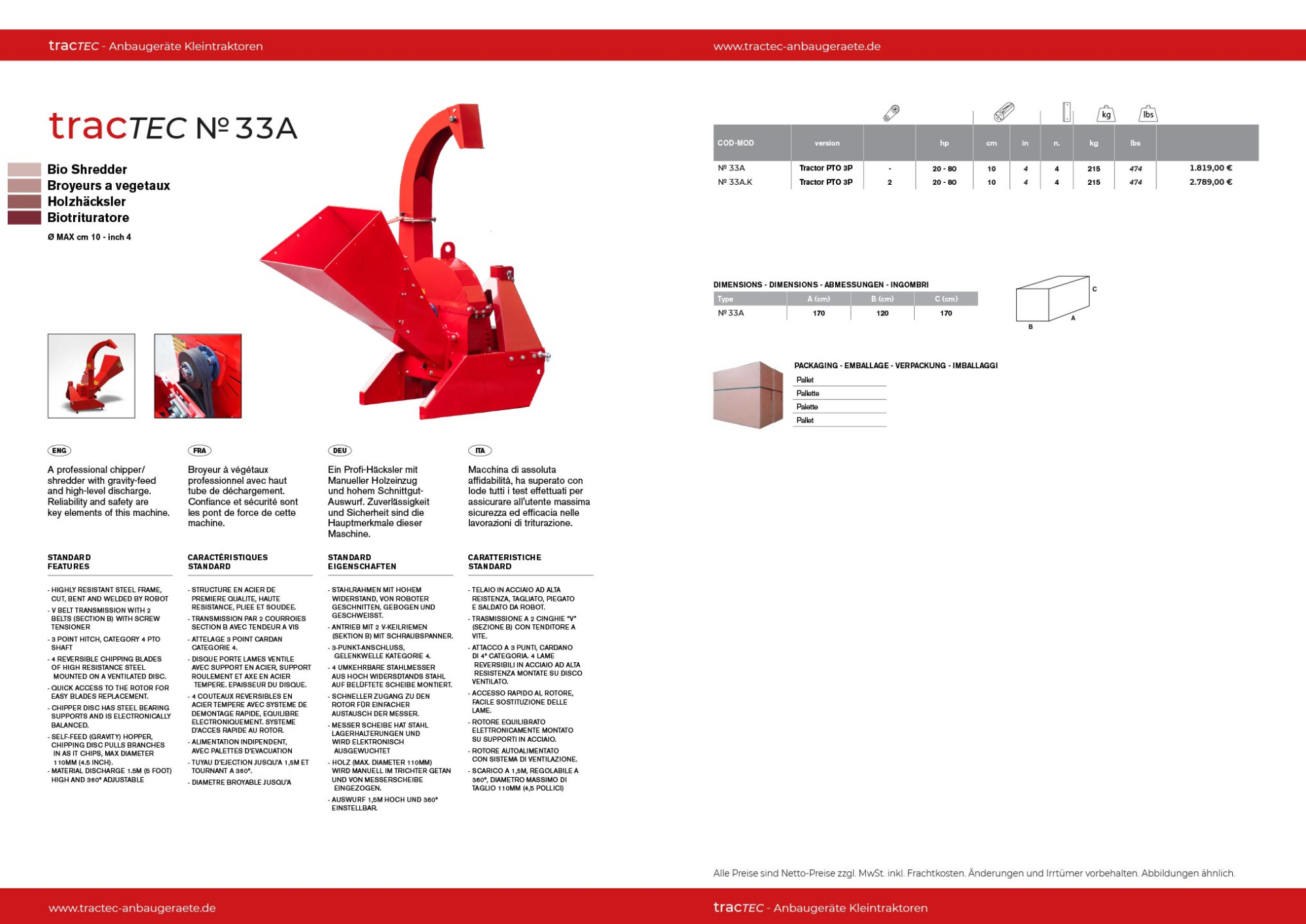 tracTEC No 33A Holzhäcksler - Modell: 33A